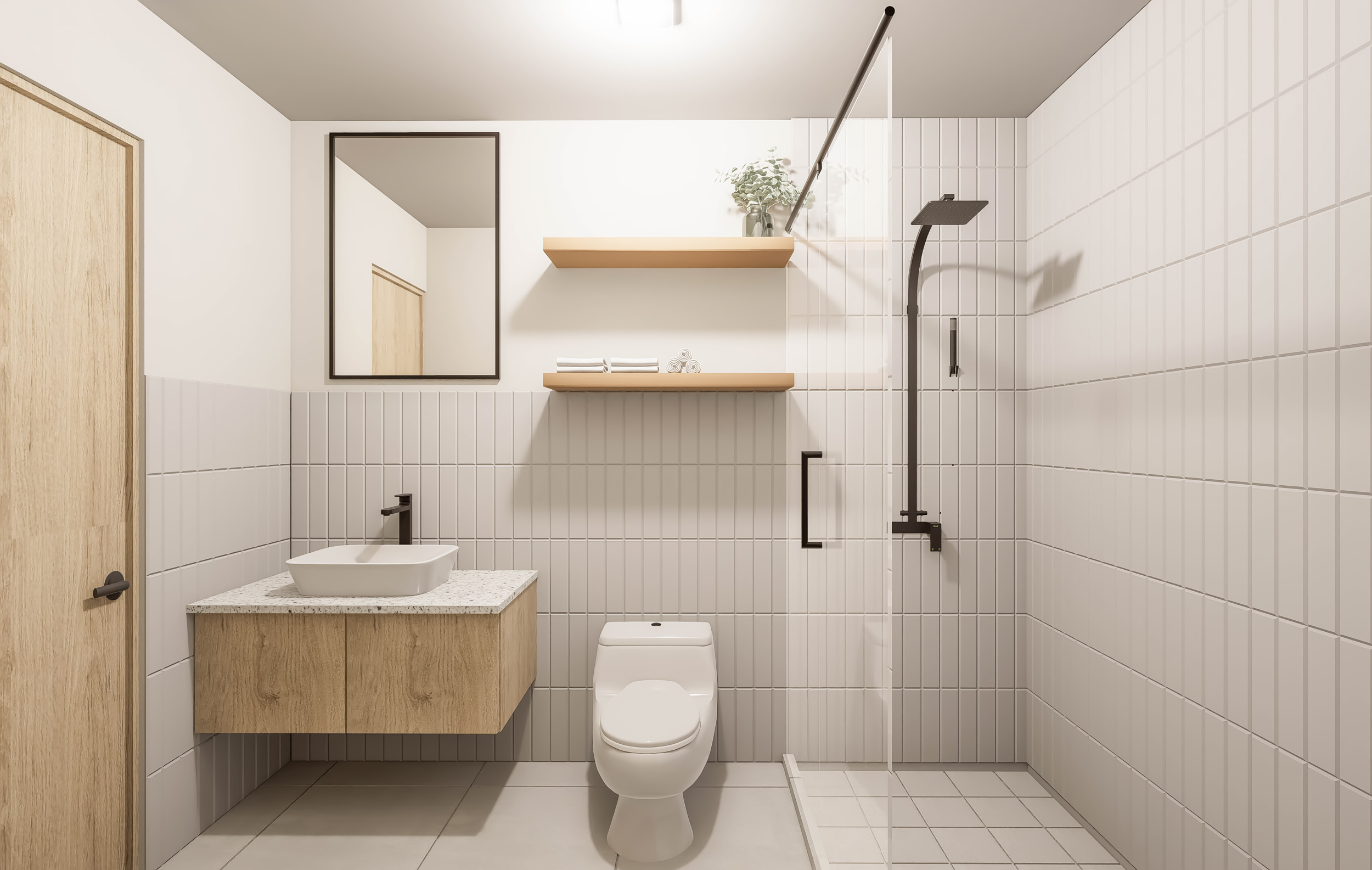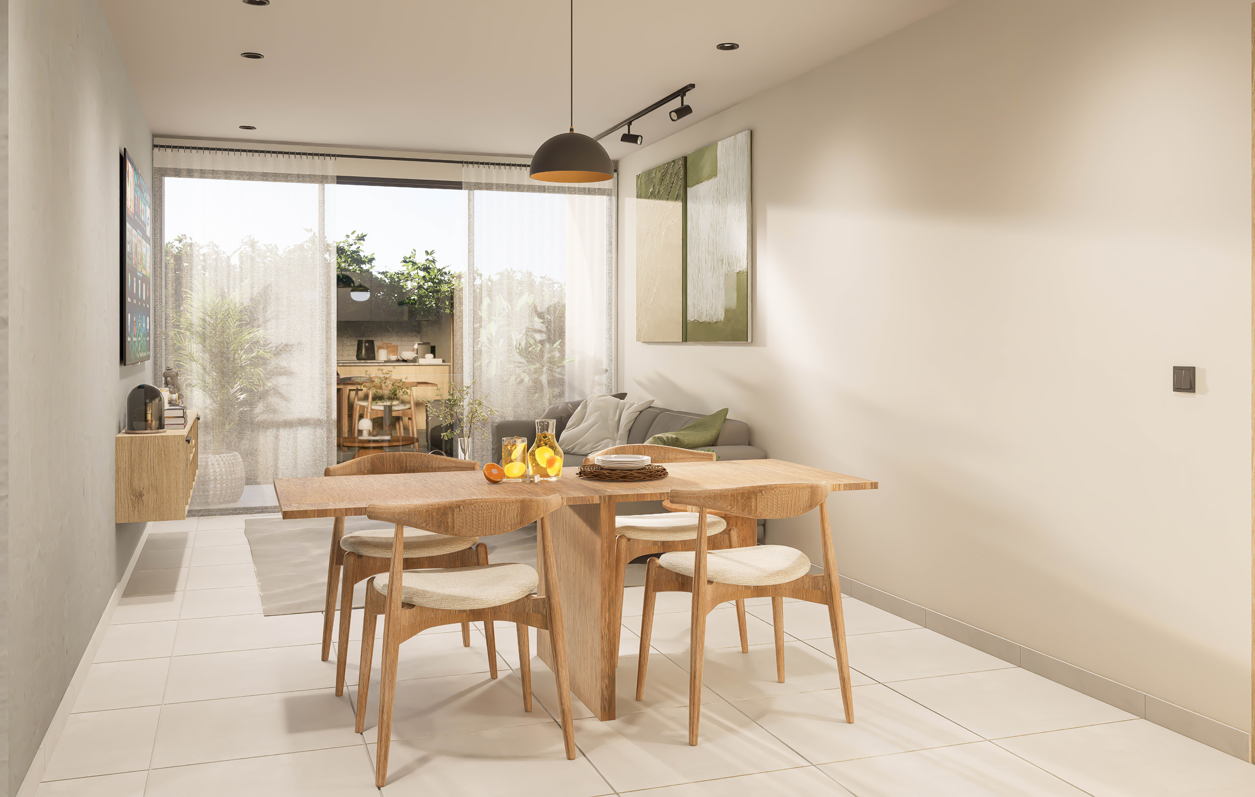 Render de Sala y Cocina Integrada Render de Cocina Modular Render de Comedor y Sala de Recibo Render de Sala de Estar Render de Baño Render de Dormitorio Principal